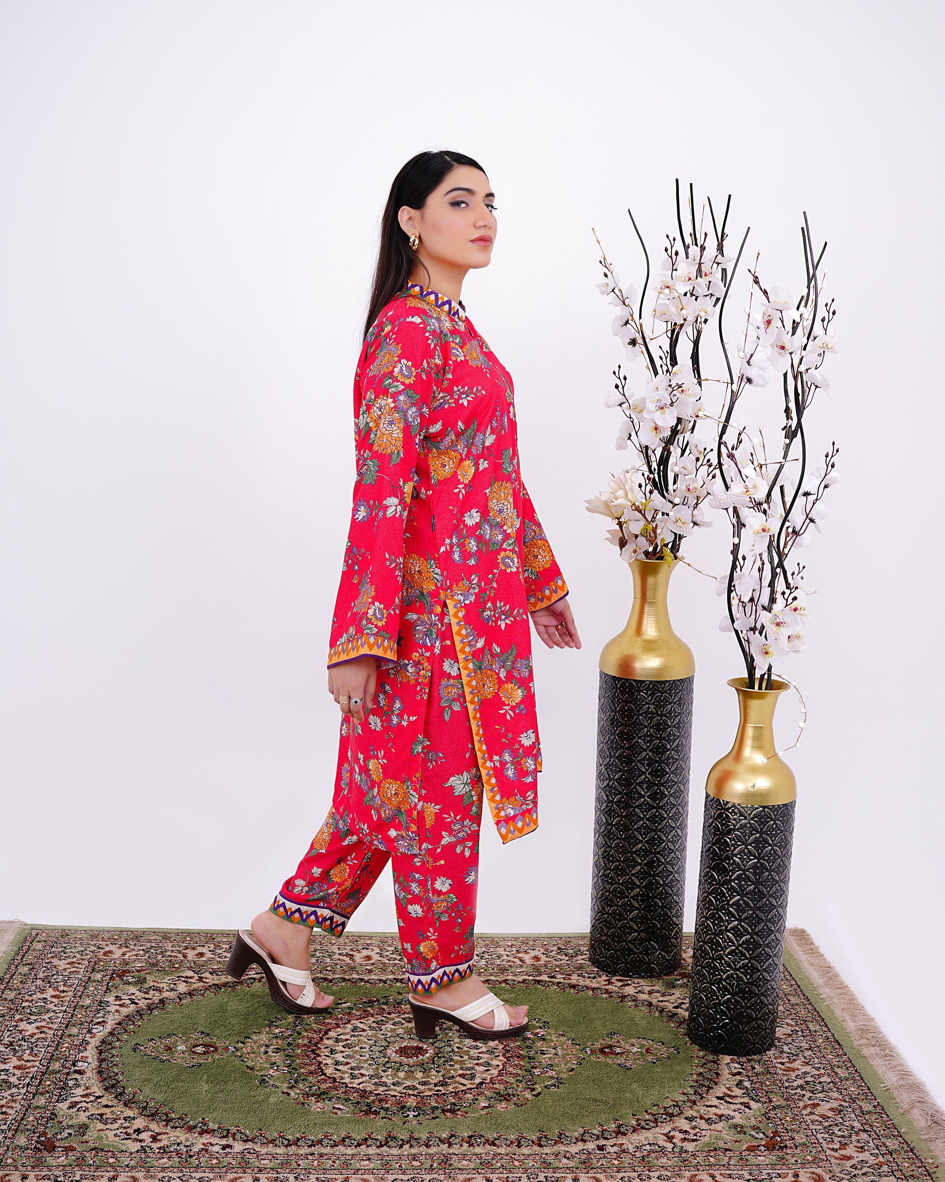 Add a burst of warmth to your winter wardrobe with WINTER-GARDEN, a radiant red floral printed two-piece suit designed for effortless elegance. Crafted from premium soft krandi khadar, this ensemble offers the perfect balance of comfort, warmth, and sophistication.